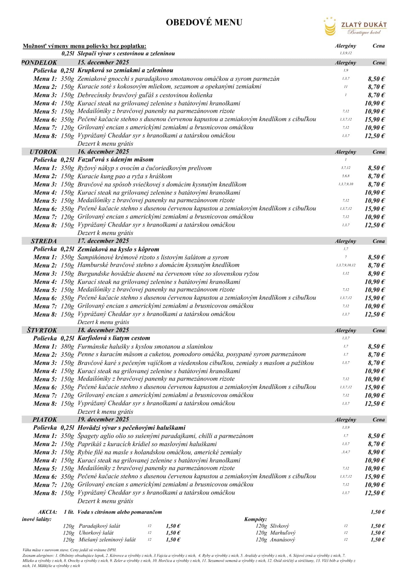 Obedové menu od 15.12.2025 do 19.12.2025
